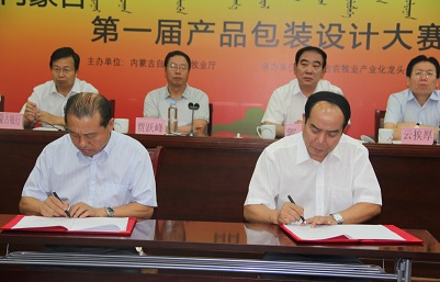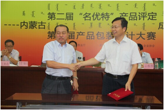 隨后,農牧業(yè)廳云挨厚副廳長與內蒙古農牧業(yè)產業(yè)化龍頭企業(yè)協(xié)會會長張世斌分別公布了首屆內蒙古自治區(qū)農畜產品包裝設計競賽獲獎名單與2014(第二屆)內蒙古“名優(yōu)特”農畜產品名單,出席會議領導向獲獎企業(yè)頒發(fā)了獎杯及證書。