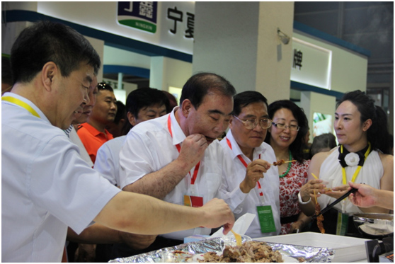 參會(huì)領(lǐng)導(dǎo)巡展并品嘗參展羊肉