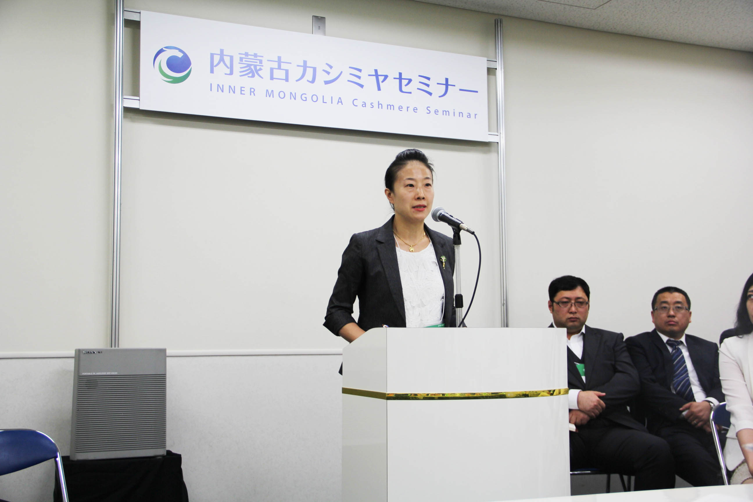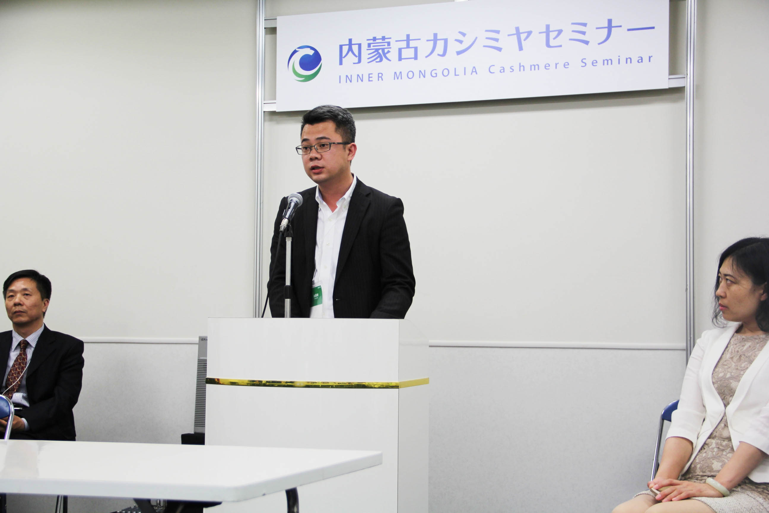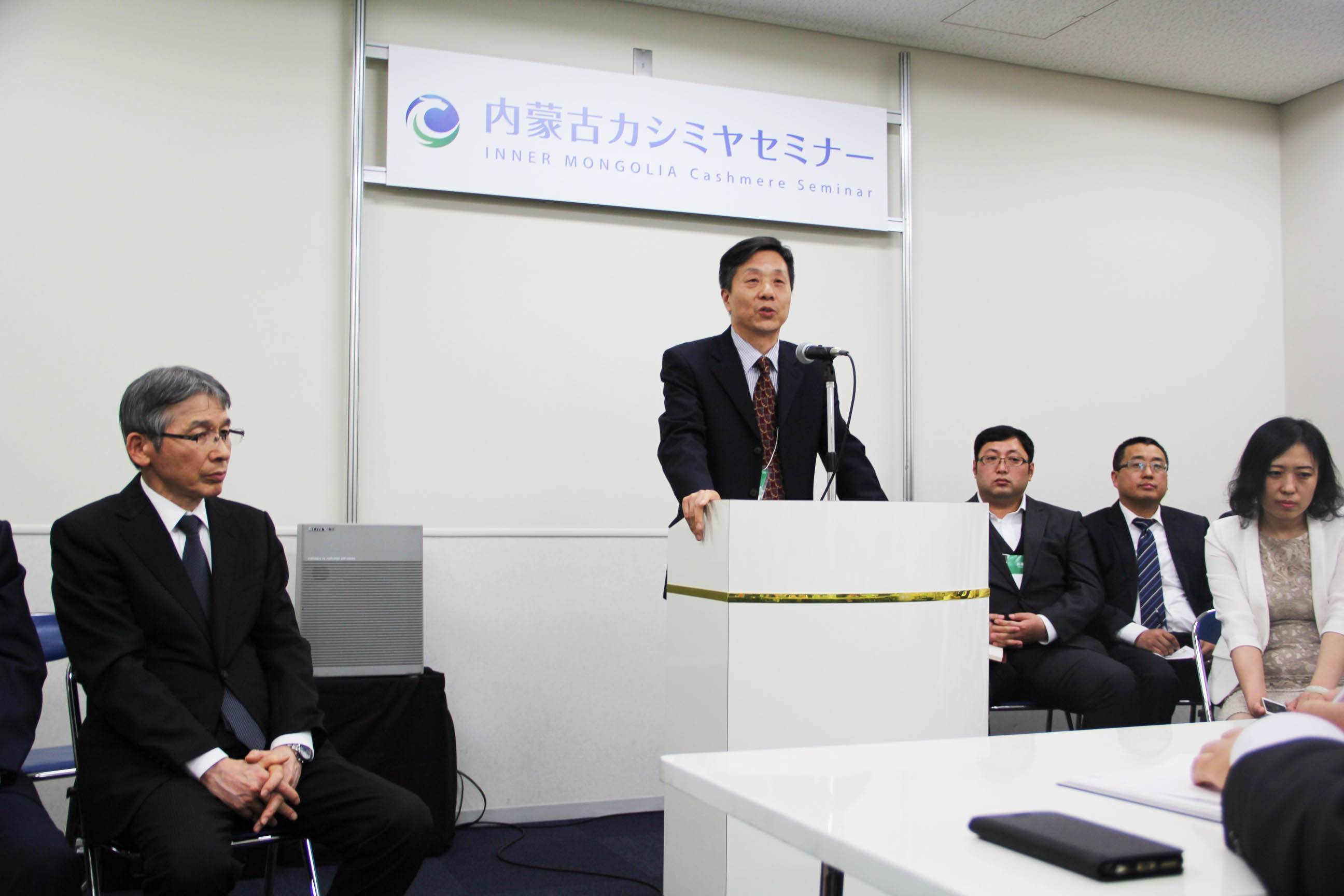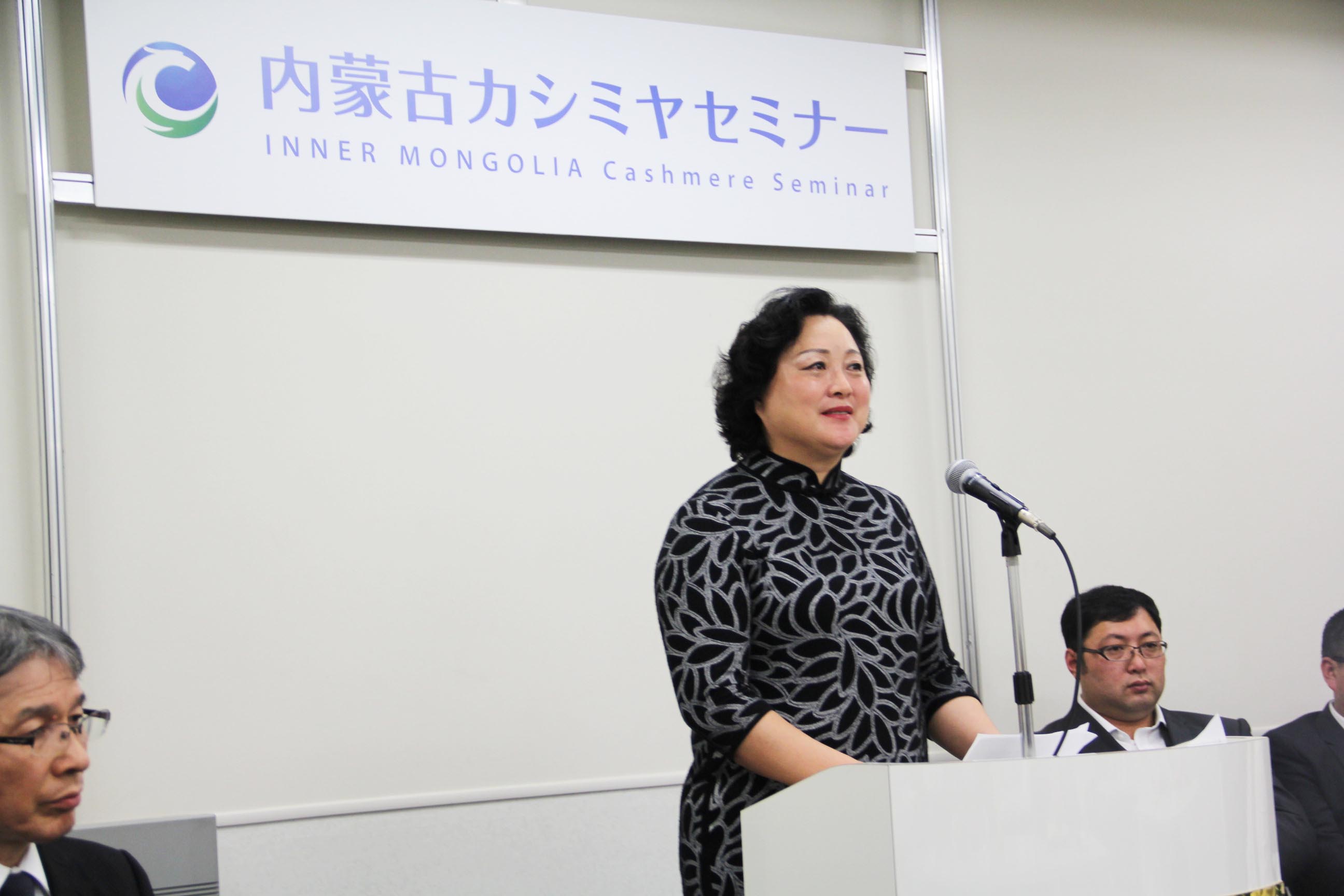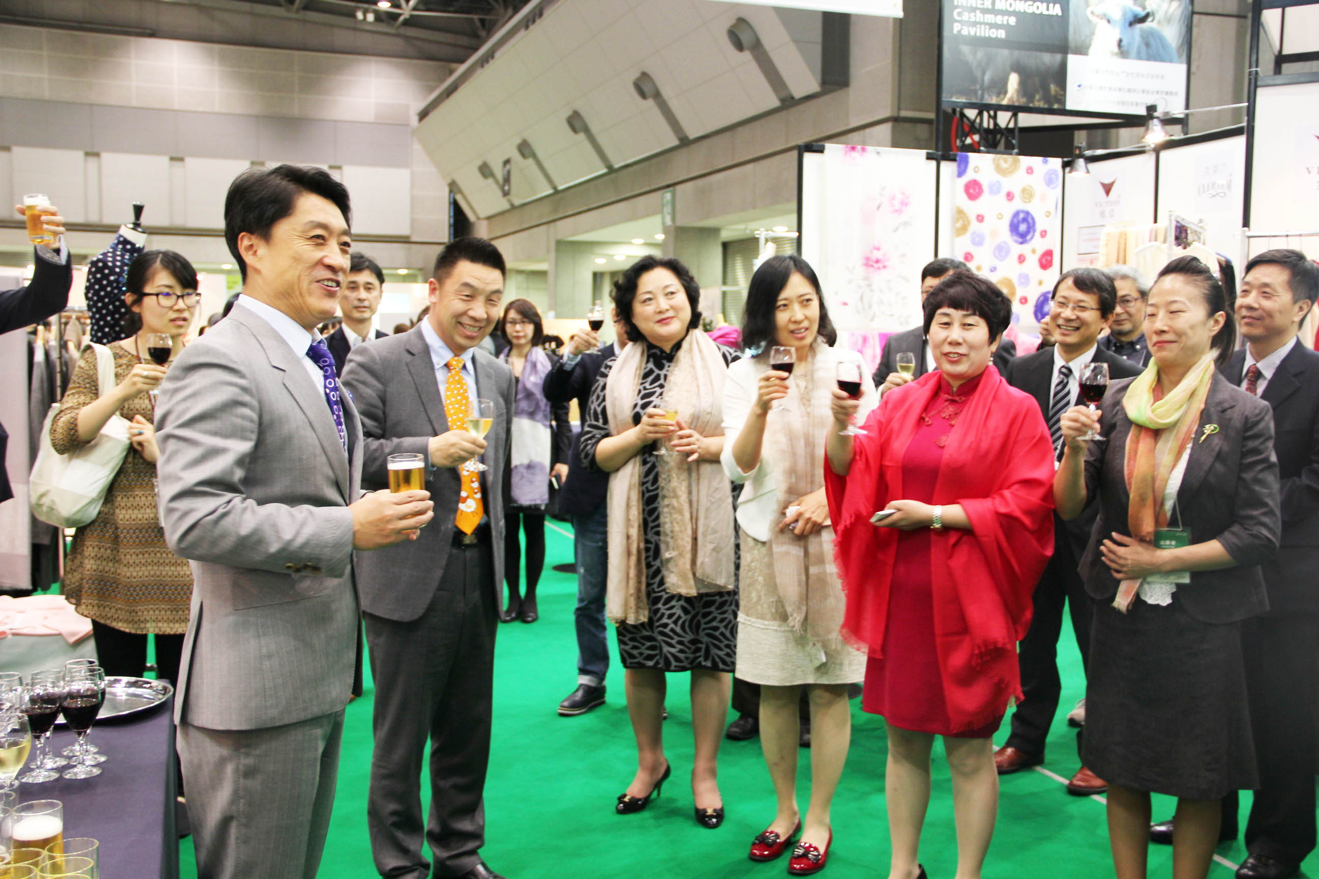 2016426日上午11時(shí),在內(nèi)蒙古羊絨展區(qū)前,舉行了盛大的開(kāi)業(yè)剪彩儀式,內(nèi)蒙古自治農(nóng)牧業(yè)廳產(chǎn)業(yè)化處副處長(zhǎng)郟金梅、內(nèi)蒙古農(nóng)牧產(chǎn)業(yè)化龍頭企業(yè)協(xié)會(huì)會(huì)長(zhǎng)閆樹(shù)春、內(nèi)蒙古農(nóng)牧產(chǎn)業(yè)化龍頭企業(yè)協(xié)會(huì)羊絨產(chǎn)業(yè)分會(huì)會(huì)長(zhǎng)王風(fēng)之出席剪彩儀式,并分別就政府支持、協(xié)會(huì)服務(wù)和企業(yè)自律發(fā)展等幾方面做了精彩致辭。郟金梅副處長(zhǎng)表示,希望通過(guò)此次活動(dòng),使得社會(huì)各界代表能夠贏得機(jī)遇、拓展空間,取得豐碩的成果,同時(shí)真誠(chéng)盼望各方來(lái)賓、新老朋友能夠進(jìn)一步了解內(nèi)蒙古羊絨,認(rèn)識(shí)內(nèi)蒙古羊絨,并以此為契機(jī),加強(qiáng)內(nèi)蒙古羊絨界與日本企業(yè)的合作,攜手發(fā)展,實(shí)現(xiàn)共贏,共創(chuàng)輝煌。閆樹(shù)春會(huì)長(zhǎng)在致辭中講到,我們此行不僅是要展示內(nèi)蒙古羊絨原料優(yōu)勢(shì)地位和行業(yè)加工的專(zhuān)業(yè)性,更希望能充分利用各個(gè)平臺(tái)廣泛交流,探討合作途徑的契合點(diǎn),推動(dòng)兩國(guó)羊絨行業(yè)多方共贏,共同提升全球市場(chǎng)對(duì)羊絨產(chǎn)品的認(rèn)知度,希望我們的羊絨企業(yè)能團(tuán)結(jié)一致,實(shí)現(xiàn)羊絨產(chǎn)業(yè)的可持續(xù)發(fā)展。羊絨產(chǎn)業(yè)分會(huì)會(huì)長(zhǎng)王風(fēng)之在致辭中表示,通過(guò)內(nèi)蒙古農(nóng)牧業(yè)產(chǎn)業(yè)化龍頭企業(yè)協(xié)會(huì)羊絨分會(huì)的平臺(tái),我們勢(shì)必會(huì)在培育超細(xì)超長(zhǎng)型產(chǎn)絨山羊、提升優(yōu)質(zhì)種群的規(guī)模、建立行業(yè)質(zhì)量標(biāo)準(zhǔn)和抱團(tuán)發(fā)展,積極進(jìn)行海外市場(chǎng)渠道、品牌、投資等多方面取得突破性進(jìn)展,致力于將中國(guó)內(nèi)蒙古羊絨打造成為全球性的產(chǎn)業(yè)品牌。