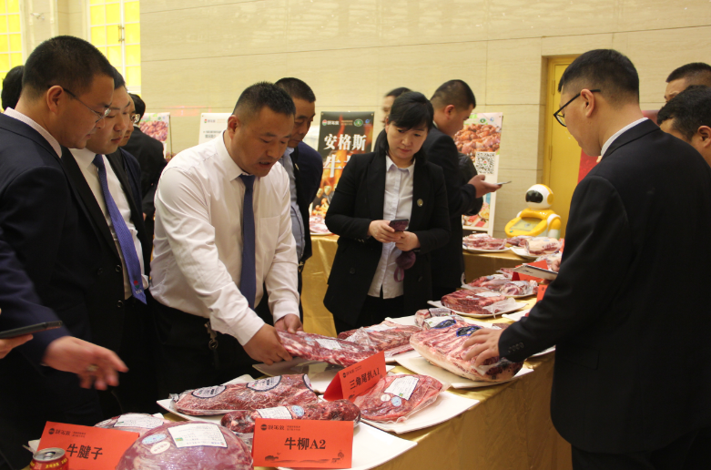 活動開始前,現(xiàn)場看到展臺上匯集了琳瑯滿目的各種錫盟牛羊肉產(chǎn)品,羊排、牛排、后腱、花腱切片、眼肉牛扒以及各種牛羊肉食品,引得眾多現(xiàn)場嘉賓駐足咨詢了解產(chǎn)品。