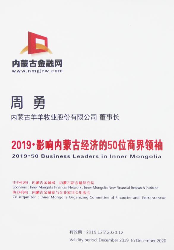年會(huì)期間重磅推出“2019·影響內(nèi)蒙古經(jīng)濟(jì)的50位商界領(lǐng)袖名單”,協(xié)會(huì)會(huì)長、錫林郭勒盟羊羊牧業(yè)股份有限公司董事長周勇,協(xié)會(huì)副會(huì)長:內(nèi)蒙古伊利實(shí)業(yè)集團(tuán)股份有限公司董事長潘剛、內(nèi)蒙古蒙牛乳業(yè)(集團(tuán))股份有限公司總裁盧敏放、內(nèi)蒙古宇航人高技術(shù)產(chǎn)業(yè)有限責(zé)任公司總經(jīng)理王尚義、維信(內(nèi)蒙古)羊絨集團(tuán)有限公司董事長郝旭寬、赤峰東榮羊絨發(fā)展(集團(tuán))有限公司董事長程旭東、內(nèi)蒙古民豐種業(yè)有限公司董事長盧文兵、內(nèi)蒙古二龍屯有機(jī)農(nóng)業(yè)有限責(zé)任公司董事長薛金利、呼倫貝爾肉業(yè)(集團(tuán))股份有限公司董事長邵堃等多家單位榮獲此項(xiàng)殊榮。選擇上榜的金融家與企業(yè)家精英在一定程度上反映了2019年其取得的新成績,以及能夠影響企業(yè)管理、行業(yè)格局和更廣闊商業(yè)世界的杰出領(lǐng)導(dǎo)者。