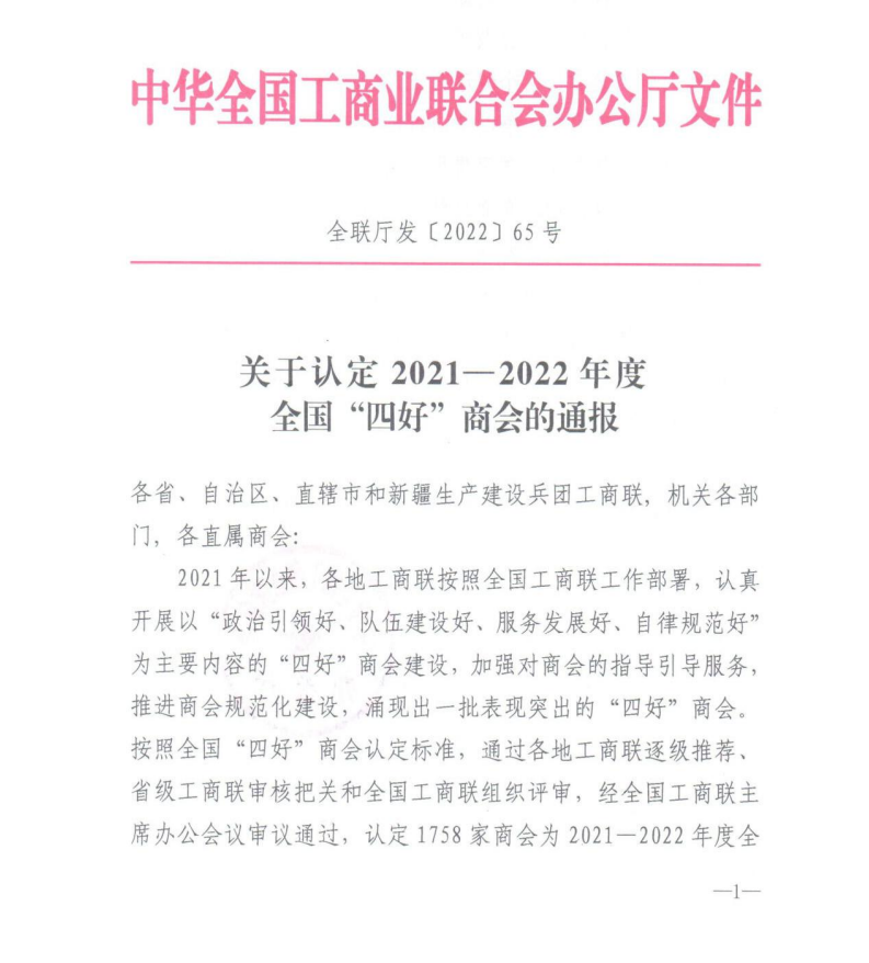 再次榮獲全國(guó)“四好”商會(huì)榮譽(yù)稱號(hào)
