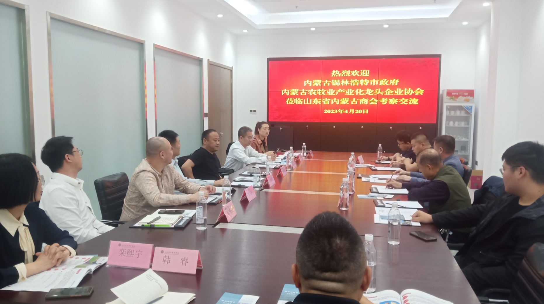 4月20日下午,內(nèi)蒙古農(nóng)牧業(yè)產(chǎn)業(yè)化龍頭企業(yè)協(xié)會(huì)執(zhí)行會(huì)長(zhǎng)林永亮、副秘書長(zhǎng)周瑞龍,內(nèi)蒙古錫林浩特市政府副市長(zhǎng)陶力古爾,錫林浩特市農(nóng)牧和科技局干部代勤、吳圖布信一行到山東內(nèi)蒙古商會(huì)座談交流。山東省內(nèi)蒙古商會(huì)會(huì)長(zhǎng)韓振濤,副會(huì)長(zhǎng)馬銀剛,支部書記高志宏,副會(huì)長(zhǎng)兼秘書長(zhǎng)侯羨暉,副秘書長(zhǎng)、青島市呼倫貝爾商會(huì)副會(huì)長(zhǎng)兼秘書長(zhǎng)郭峰,會(huì)員孫秀超,招商聯(lián)絡(luò)處主任賈曼及秘書處工作人員參加會(huì)議。
