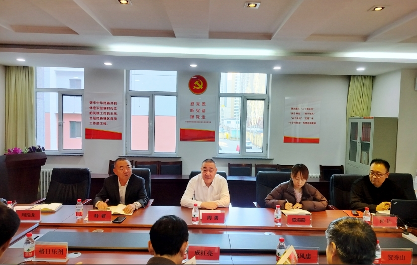 20241226日下午,中共內(nèi)蒙古自治區(qū)委員會社會工作部副部長成紅亮,處長格日樂圖、自治區(qū)農(nóng)牧廳二級巡視員、人事處處長鄭風(fēng)忠,副處長賀秀山等一行6來協(xié)會調(diào)研指導(dǎo)工作,協(xié)會會長周勇出席會議,會議由協(xié)會秘書長呼群主持。