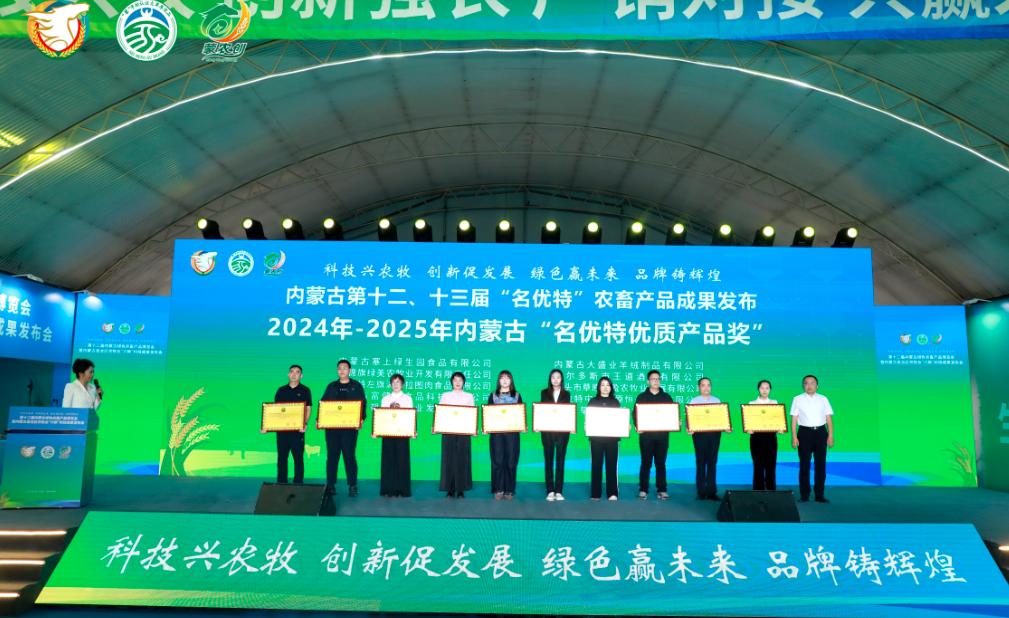 發(fā)布會(huì)上自治區(qū)農(nóng)牧廳二級(jí)巡視員侯雁冰、畜牧局局長(zhǎng)紅海、自治區(qū)人民政府駐上海辦事處黨組書記、主任李志剛、自治區(qū)農(nóng)牧廳鄉(xiāng)村產(chǎn)業(yè)發(fā)展和農(nóng)墾處處長(zhǎng)邢瑞、農(nóng)畜產(chǎn)品質(zhì)量安全中心副主任云巖春、協(xié)會(huì)會(huì)長(zhǎng)徐建忠、內(nèi)蒙古綠色與有機(jī)食品協(xié)會(huì)常務(wù)副會(huì)長(zhǎng)、高級(jí)顧問邢黎明為獲得第十二、十三屆名優(yōu)特認(rèn)證的企業(yè)頒發(fā)獎(jiǎng)牌并合影留念。