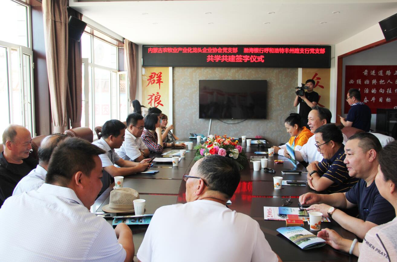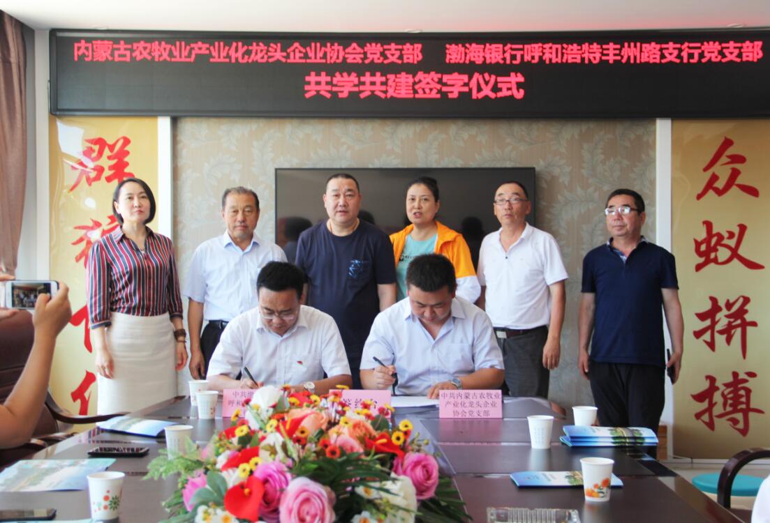 活動過程中,為創(chuàng)造性地推進(jìn)黨組織“共學(xué)共建”結(jié)對工作,圍繞新時代黨的建設(shè)總要求,內(nèi)蒙古農(nóng)牧業(yè)產(chǎn)業(yè)化龍頭企業(yè)協(xié)會黨支部和渤海銀行呼和浩特豐州路支行黨支部簽訂了《共學(xué)共建結(jié)對協(xié)議》。通過結(jié)對共建,在弘揚(yáng)社會正能量、加強(qiáng)愛國主義教育等方面樹立新典型,力爭在構(gòu)建銀企合作關(guān)系等方面取得新突破。