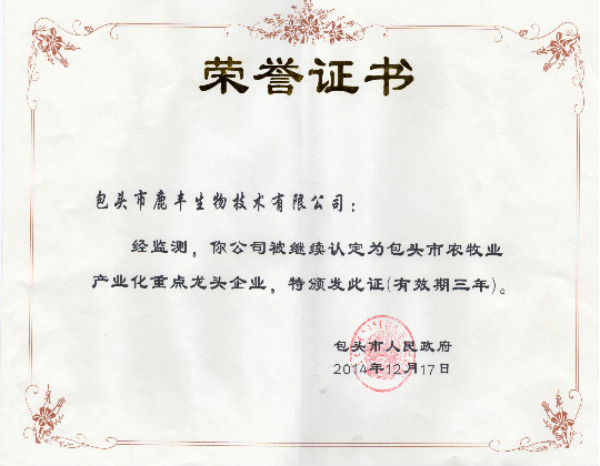 公司簡介 鹿豐生物技術(shù)有限公司坐落在美麗的內(nèi)蒙古大草原稀土之都—包頭,內(nèi)蒙古包頭一顆生長在大草原上的璀璨明珠,這里天空純凈明亮、草地遼闊壯麗、空氣清新、綠草如茵、牛羊成群。這片得天獨厚的天然草原成就了內(nèi)蒙古畜牧業(yè)的蓬勃發(fā)展。 鹿豐生物技術(shù)有限公司于2010年5月注冊成立,注冊資本500萬元。位于包頭市昆都侖區(qū)團結(jié)大街212號,占地面積20畝...