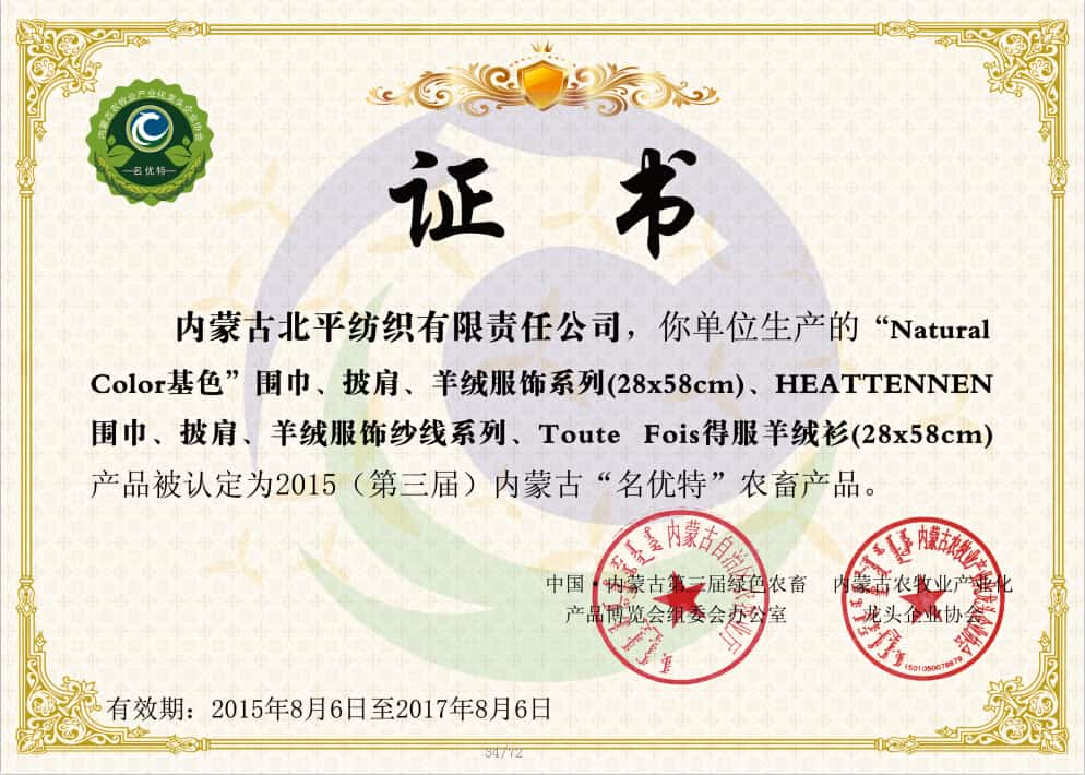 內(nèi)蒙古北平紡織有限責(zé)任公司是一家集設(shè)計(jì)、生產(chǎn)和銷售為一體的國(guó)際化羊絨制品集團(tuán)公司。公司總部及生產(chǎn)基地位于內(nèi)蒙古呼和浩特市金山開(kāi)發(fā)區(qū)。公司下轄有:集企劃、設(shè)計(jì)、營(yíng)銷于一體的全資海外子公司和連通國(guó)內(nèi)外流通貿(mào)易樞紐的上海北田共貿(mào)易公司。 公司成立于2005年,總占地面積60000多平方米,建筑面積30...
