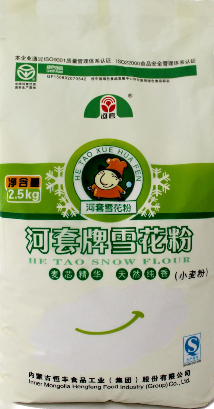 河套雪花粉河套平原優(yōu)質小麥的代表產品是中國優(yōu)質面粉的代名詞,出粉率一般在26%~30%,白度可達到79%適合制作各類蒸煮食品,自然潔白,為您和家人帶來品味、品質生活