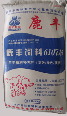 B、育肥羊濃縮飼料:執(zhí)行標(biāo)準(zhǔn)Q/BLFS02-2013,主要原料組成:豆粕、菜粕、棉粕、DDGS、石粉、磷酸氫鈣、食鹽、復(fù)合預(yù)混料等。產(chǎn)品成分保證值:粗蛋白≧35.0,粗纖維≦14.0,粗灰分≦20.0,鈣1.8-4.0,總磷≧0.8,鹽1.0-2.0,水分≦14.0、賴氨酸≧0.8。
