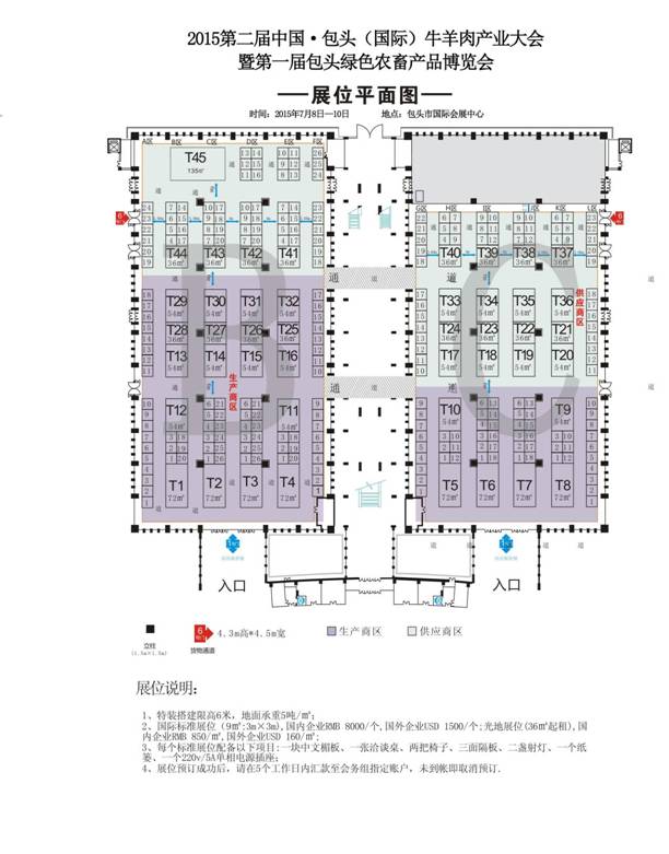 根據(jù)規(guī)劃,展館占地面積為10664平米。其中B館占地面積為5832平米可供搭建標(biāo)準(zhǔn)展位(3mX3m256個(gè),主要以國(guó)內(nèi)外牛羊肉生產(chǎn)加工企業(yè)、生產(chǎn)加工設(shè)備、包裝技術(shù)、冷鏈服務(wù)、各地區(qū)集體參展、獸醫(yī)獸藥、圈舍舍建設(shè)、飼草、金融服務(wù)機(jī)構(gòu)、品牌營(yíng)銷(xiāo)機(jī)構(gòu)等企業(yè)為主導(dǎo)。C館占地面積4832平米,可供搭建標(biāo)準(zhǔn)展位(3mX3m229個(gè),主要以包頭市轄內(nèi)各農(nóng)牧業(yè)企業(yè)等參展單位為主。