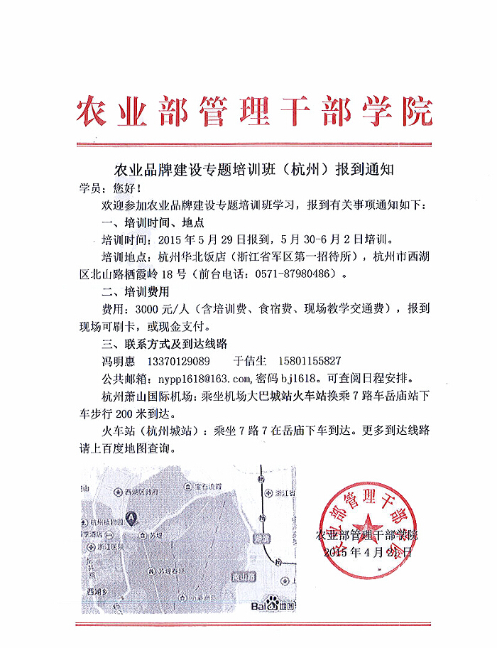 關于組織參加農(nóng)業(yè)品牌建設專題培訓班的通知