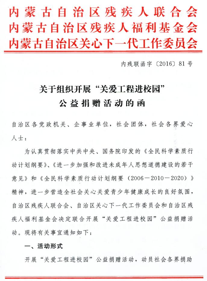 關(guān)于組織開展“關(guān)于工程進(jìn)校園”公益捐贈活動的通知