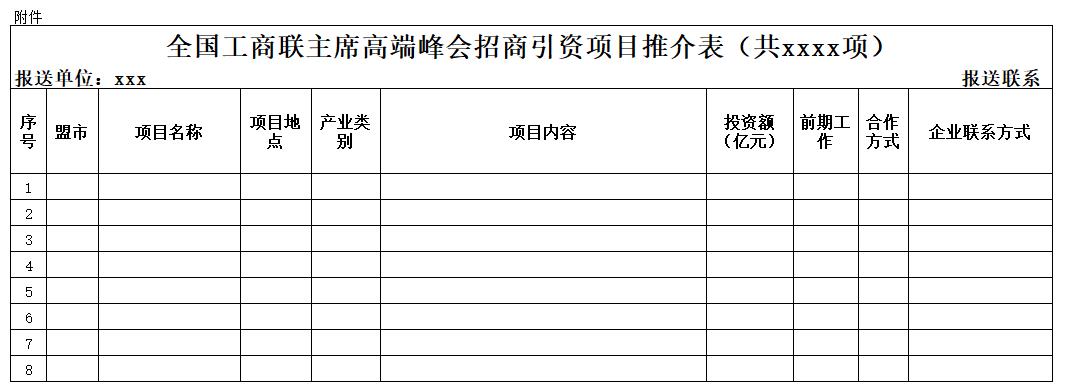 附件《全國(guó)工商聯(lián)主席高端峰會(huì)招商引資項(xiàng)目推介表》