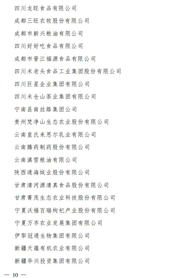 附件:新遞補的農(nóng)業(yè)產(chǎn)業(yè)化國家重點龍頭企業(yè)名單(共148 家)