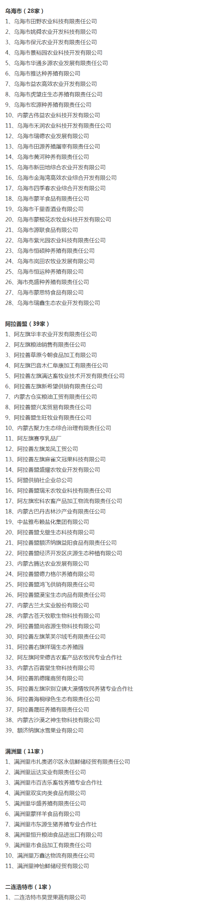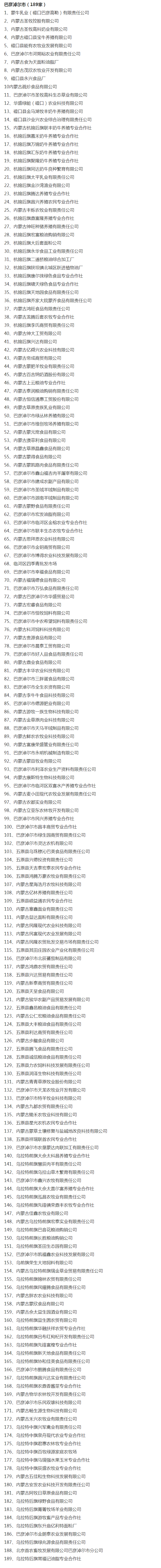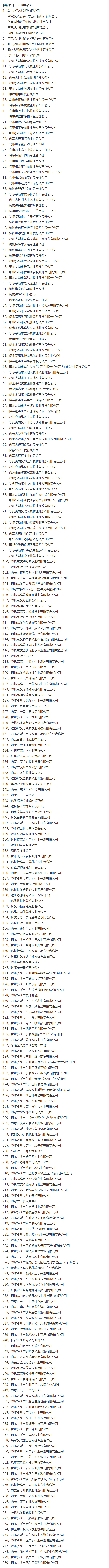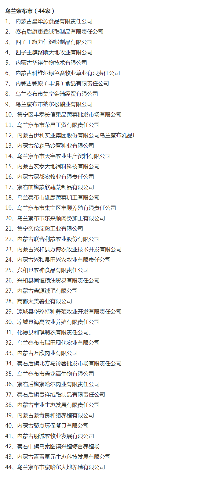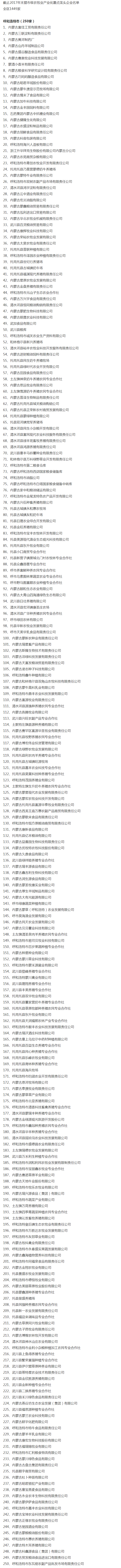 企業(yè)名稱:截止2017年末盟市級(jí)農(nóng)業(yè)產(chǎn)業(yè)化重點(diǎn)龍頭企業(yè)名單