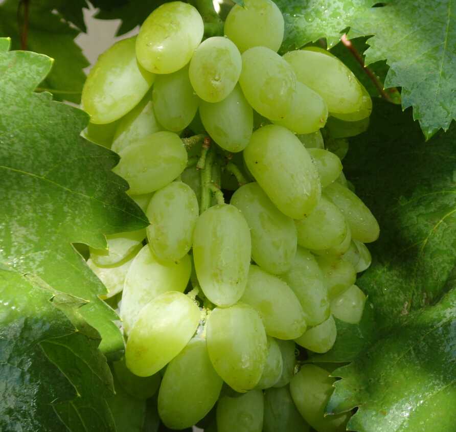 森田尼葡萄:別名青提,屬歐亞種。果實(shí)黃綠色,雞心形。果粒中等大,最大粒重6,平均粒重4-5。果穗大,果皮薄,果肉脆硬,有淡麝香味。
