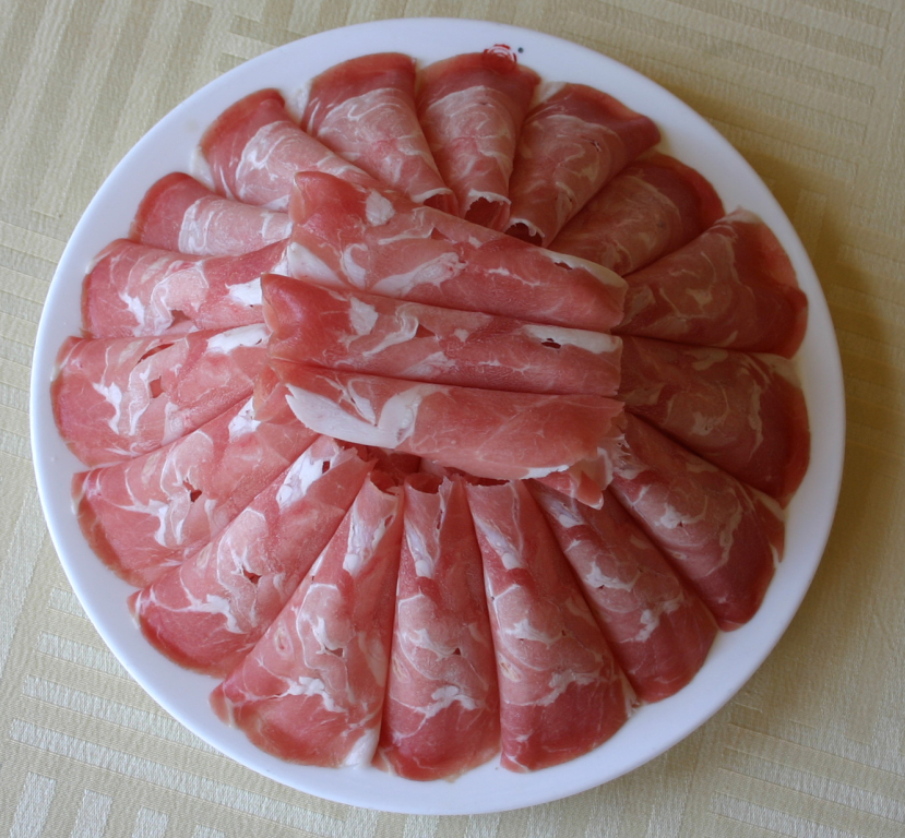 六、   尾坯:選用原料:去掉云皮、血線之后的整羊尾油,經(jīng)過特殊工藝之后,碼制而成。其特點是切片薄如紙、勻如晶,口感不膻不膩。
