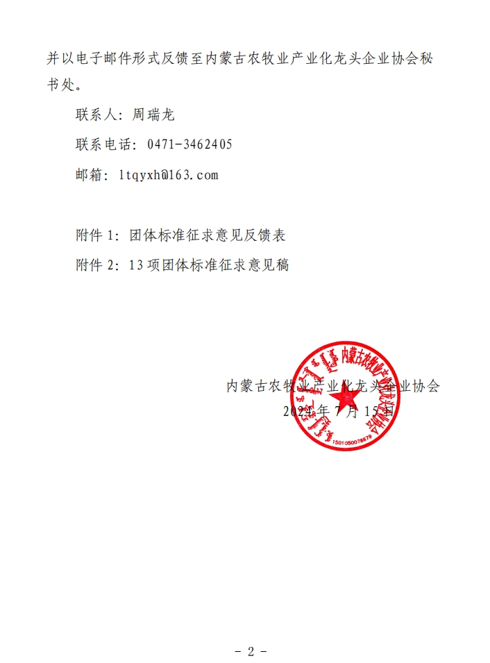 內蒙古農牧業(yè)產業(yè)化龍頭企業(yè)協(xié)會關于《咸奶茶粉配方》《咸奶茶粉加工工藝規(guī)程》等13項團體標準征求意見的通知